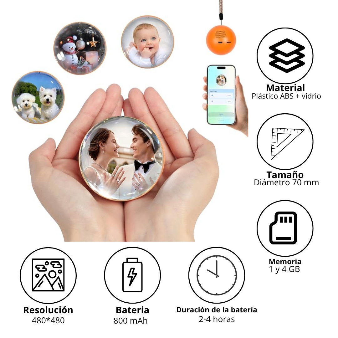 "Guarda los momentos más especiales con tu compañero y revívelos una y otra vez. Cada video proyectado en esta esfera multimedia te permite sentir la alegría, la ternura y la conexión que compartes con tu compañero fiel, de manera fácil y rápida."